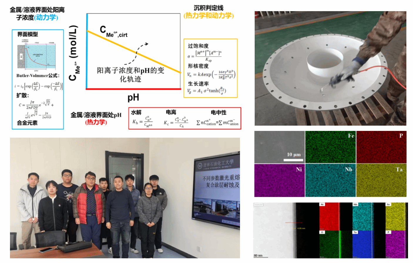 团队聚焦石化与新能源应用场景,凝练形成“四链一体”研究方向:高温氯腐蚀机理揭示、面向工况的复合涂层设计、合金粉末制备以及喷涂工艺优化,并与中国石化催化剂公司、抚顺特钢等单位建立联合攻关机制。围绕催化剂产业关键痛点,团队突破苛刻环境下酸性尾气系统的高温高氯/多相耦合腐蚀难题,开展关键材料国产替代技术攻关,推进重大装备失效分析与可靠性提升;形成核心装备长周期稳定运行的技术创新体系;构建复杂工况下设备系统化防护的工程综合治理方案。团队坚持工程化落地导向,为辽宁地区石化、装备制造及新能源企业提供可复制、可推广的装备腐蚀防护解决方案,显著降低停机与维护成本,助力区域产业向高端化、绿色化升级。